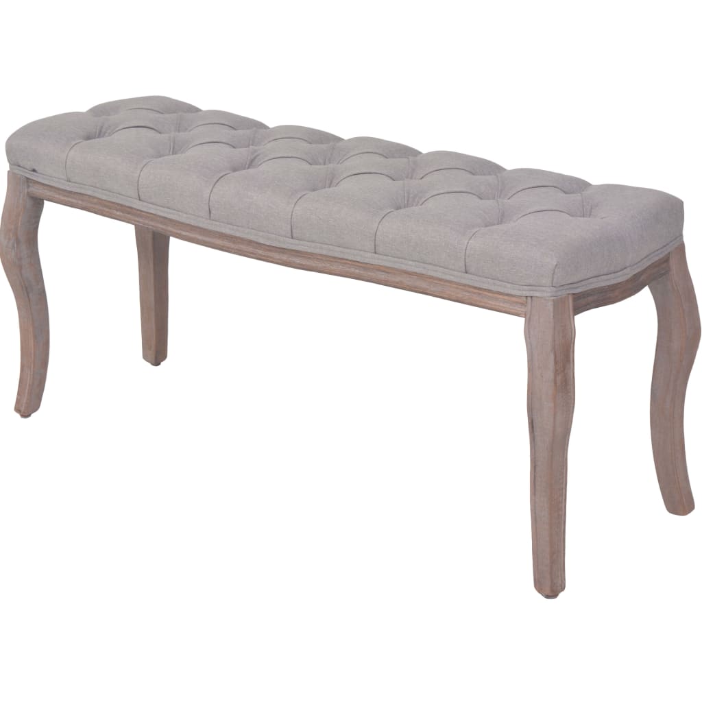 Denna lyxigt vadderade bänk utstrålar en antik charm och blir ett utmärkt tillskott till hemmet. Denna klassiskt designade bänk har en raffinerad charm tack vare dess massiva trästomme med elegant svängda stolsben. Den högkvalitativa och generöst vadderade linneklädseln gör bänken bekväm såväl som stilren. Monteringen är enkel.