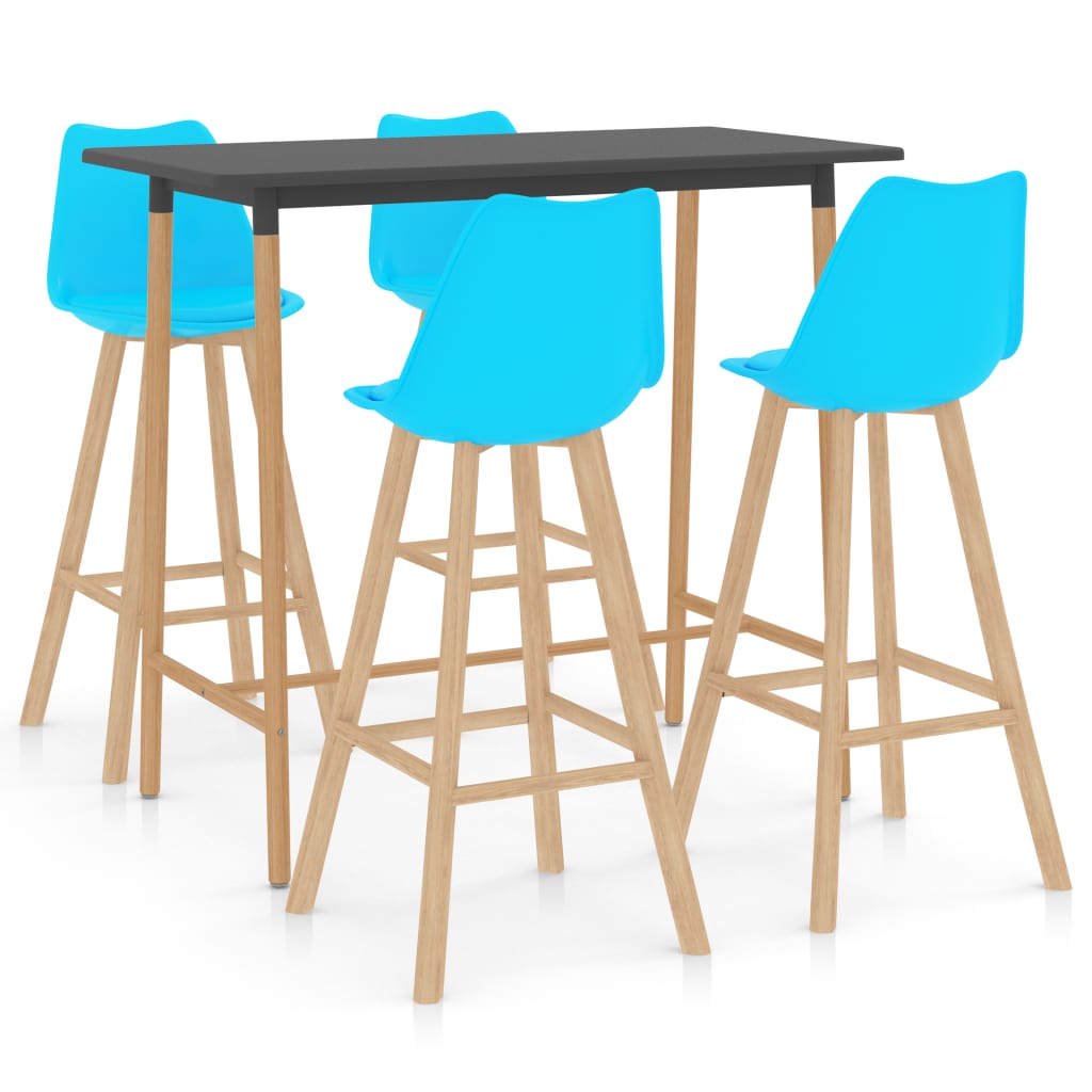 Samtala med vänner eller ta en drink medan du kopplar av på denna snygga bargrupp! Bordsskivan är tillverkad i MDF med PVC och sitsarna är klädda i konstläder som gör dem enkla att rengöra. Bargruppen har ben i massivt bokträ och är stabil och tålig. Dessa barstolar har även inbyggt fotstöd för ökad komfort.