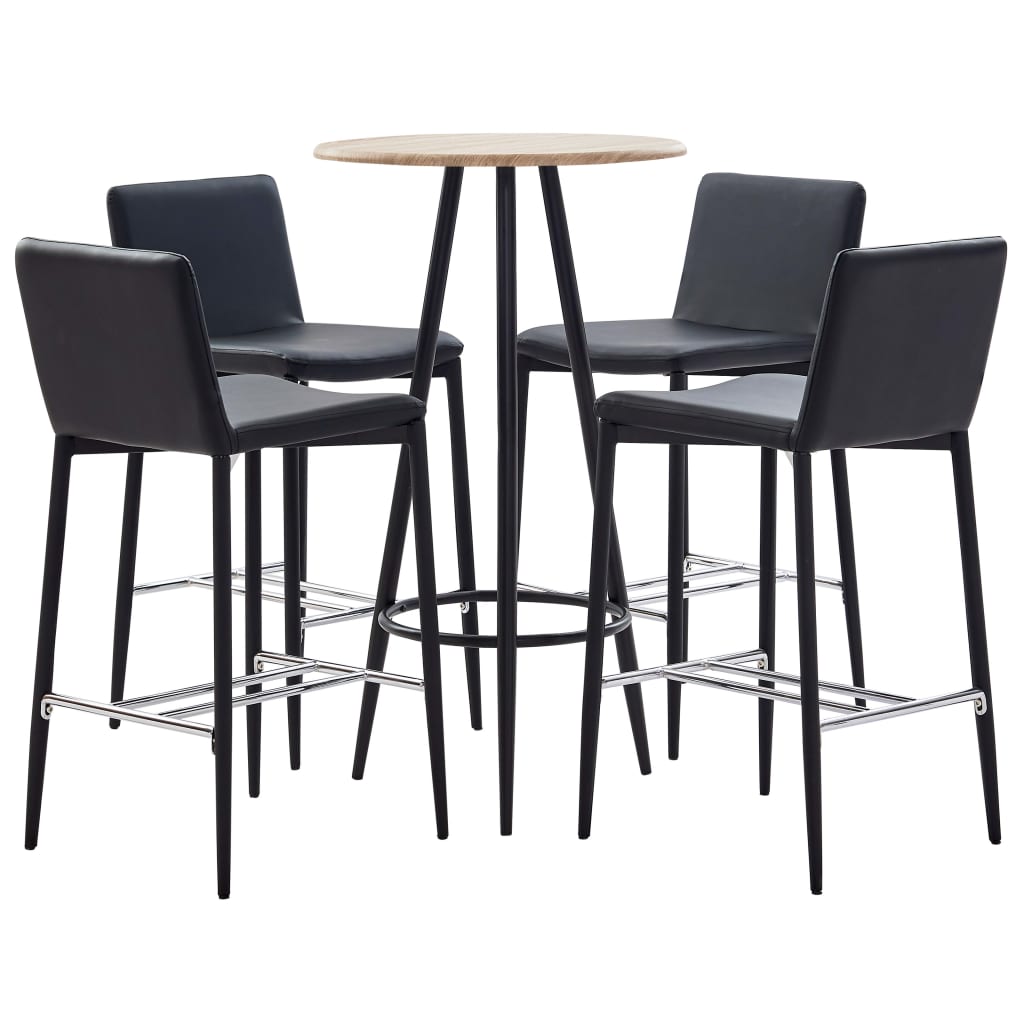 Denna bargrupp med modern design passar in i ett modern hem, trädgården, barer eller restauranger. Dess rena och samtida design kompletterar din inredning. Bordsskivan är tillverkad i MDF som är lätt att rengöra. Stativet med belagt stål bidrar till bordets stabilitet och hållbarhet. Pubstolarna har en ergonomiskt utformad sits med integrerat ryggstöd i ett modernt, böjt utseende. Dessutom är de lätta att montera. Vår bargrupp är optimal för att njuta av ett glas vin i baren, ta en mumsbit eller för att använda som extra sittplatser när du har gäster. Vid leverans ingår ett barbord och 4 barstolar.