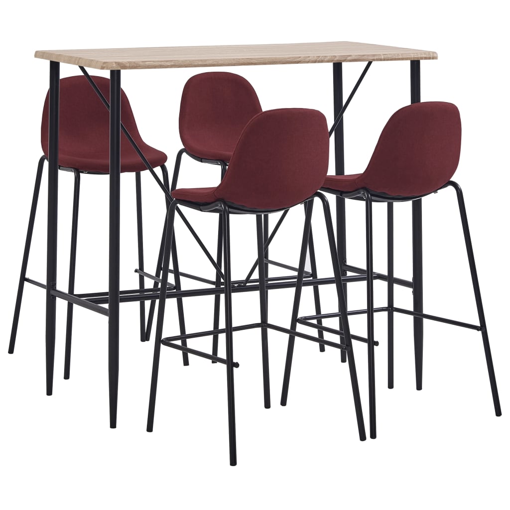 vidaXL Bargrupp 5 delar tyg vinröd