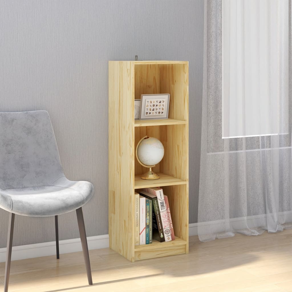 Bokhyllan i trä har en stilren och vacker design och blir ett dekorativt och praktiskt tillskott i ditt hem. Bokhyllan är tillverkad av massiv furu, vilket gör den robust och stabil. Den har 3 rymliga utrymmen med gott om plats att förvara tidskrifter, böcker, dvd:er, medieapparater och prydnadssaker organiserat och inom räckhåll. Den kan dessutom användas som en rumsavdelare och passar perfekt till hallen eller andra rum. Bokhyllan torkas enkelt av med en fuktig trasa.
