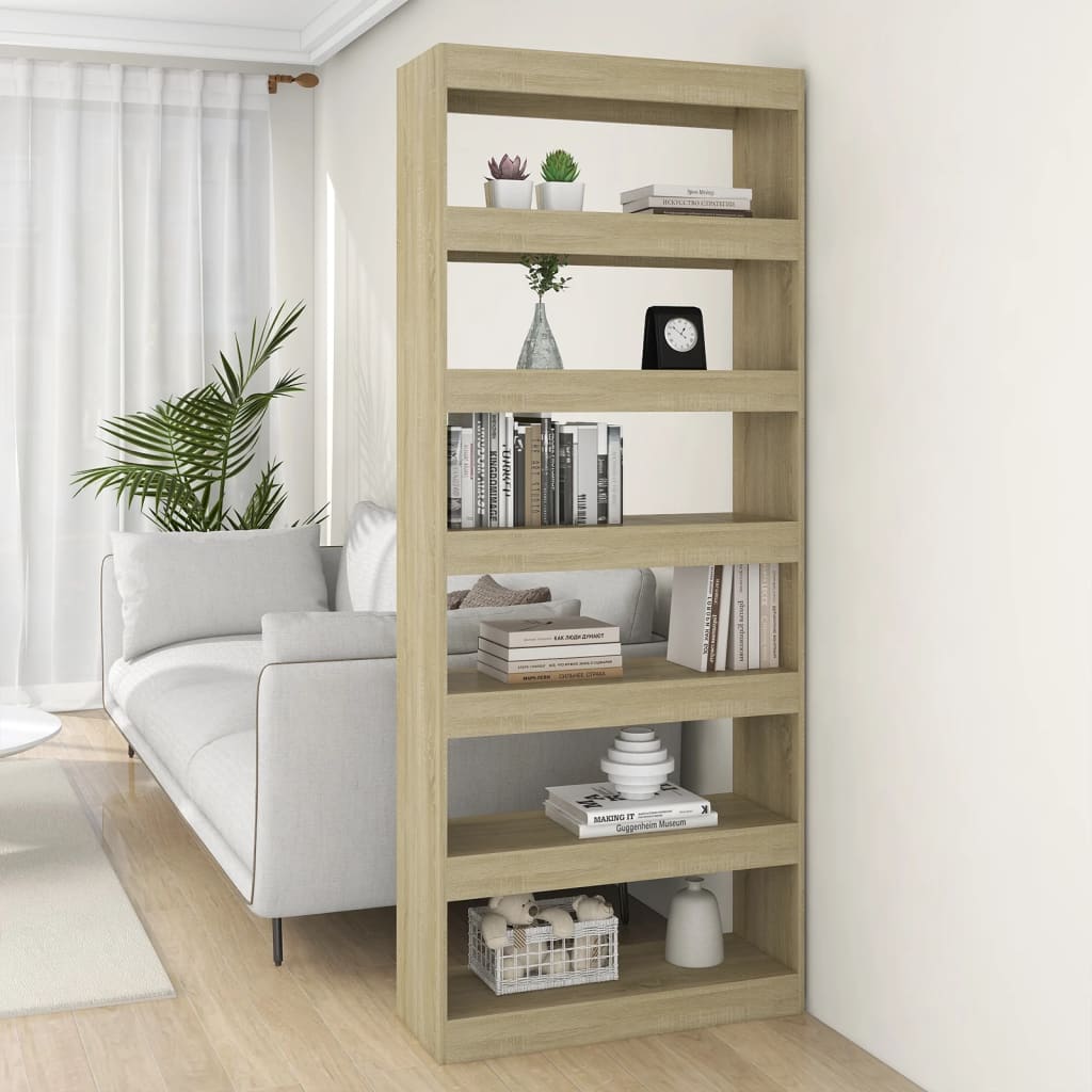 vidaXL Bokhylla/Rumsavdelare sonoma-ek 80x30x198 cm spånskiva