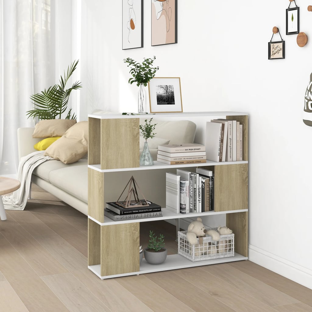 vidaXL Bokhylla Rumsavdelare vit och sonoma-ek 100x24x94 cm
