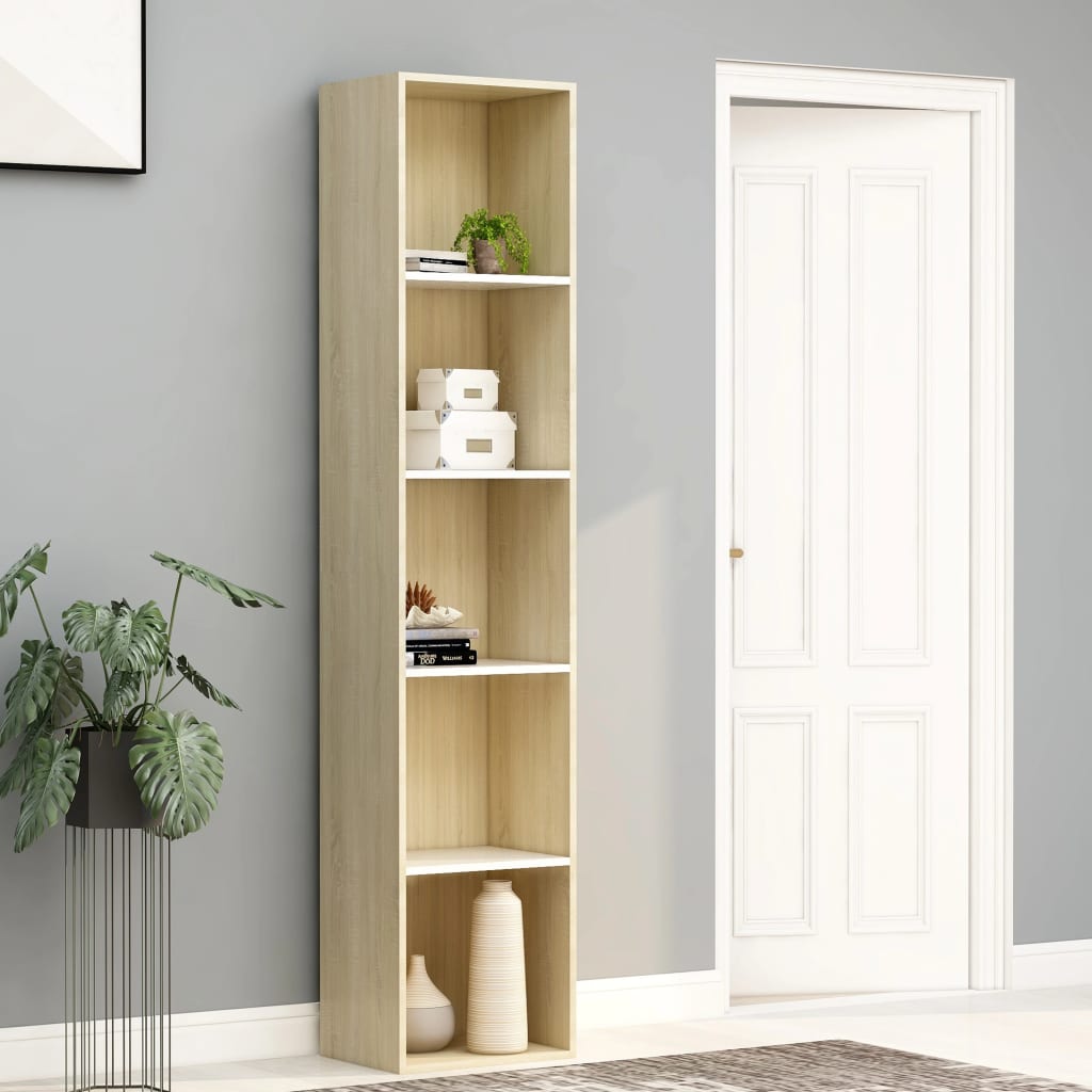 Vår bokhylla har en modern, elegant och minimalistisk design som gör att den passar på de flesta ställen. Den kan smälta in perfekt i ditt hems inredning och skapar en modern känsla. Denna bokhylla är tillverkad i kvalitativ spånskiva och är stabil och hållbar. Den höga bokhyllan har fem rymliga hyllor med gott om plats för att förvara och visa upp saker som samlarföremål, böcker, småsaker, fotoramar, osv. Bokhyllan är lätt att montera.