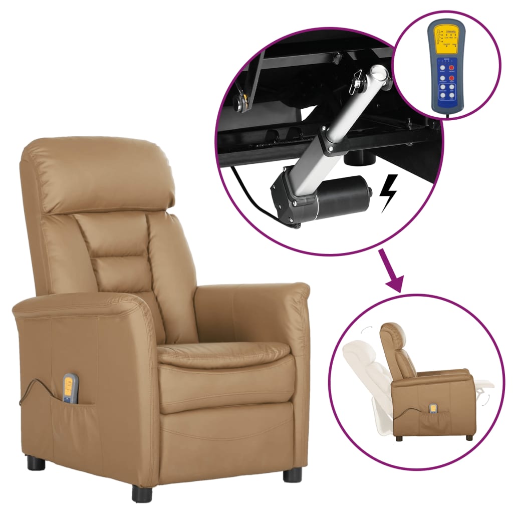 vidaXL Elektrisk massagefåtölj cappuccino konstläder