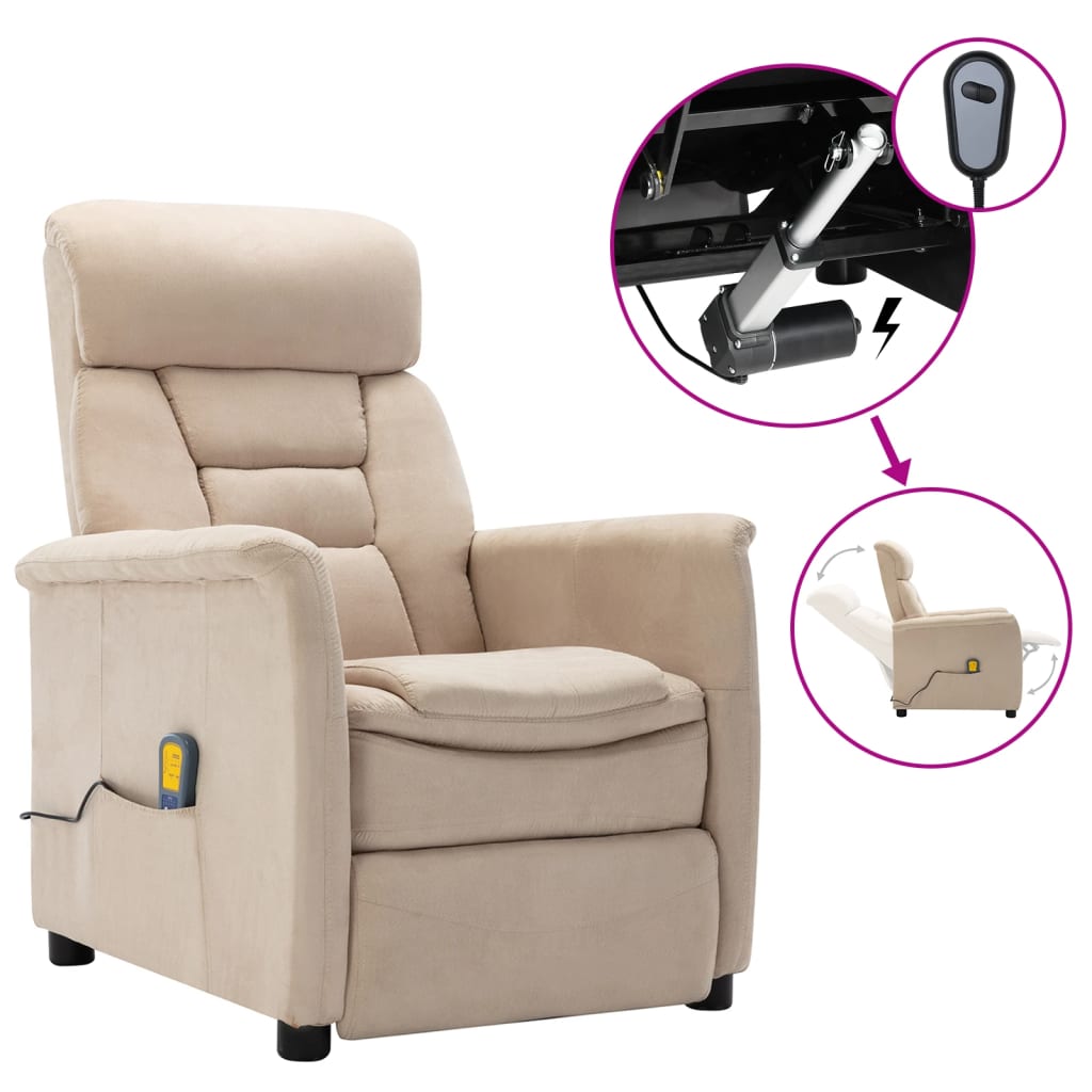 Vår elektriska massagefåtölj har lutnings- och värmefunktion. Denna justerbara TV-stol är en utmärkt sittlösning för ditt vardagsrum. Den elektriska massagefåtöljen är gjord av konstmocka och har en ram i järn, fylld med skum vilket gör den stabil och mjuk att sitta i. Den elektriska massagestolen har 6 massagepunkter för rygg, sits och fötter för att skicka avkopplande vibrationer. Med ett tryck på knappen kan sätet också värmas upp för en extra avkoppling. Denna fåtölj är utrustad med en elektrisk motor, som gör att du enkelt kan justera ryggstödet och fotstödet bakåt eller framåt med en praktisk kontroll. Denna elektriska massagefåtölj är också utrustad med sidoficka för fjärrkontrollen. Upplev en härlig stund i denna massagefåtölj!