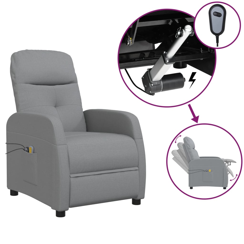 vidaXL Elektrisk massagefåtölj ljusgrå tyg