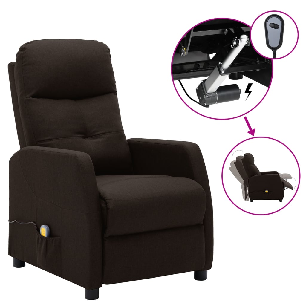 vidaXL Elektrisk massagefåtölj mörkbrun tyg