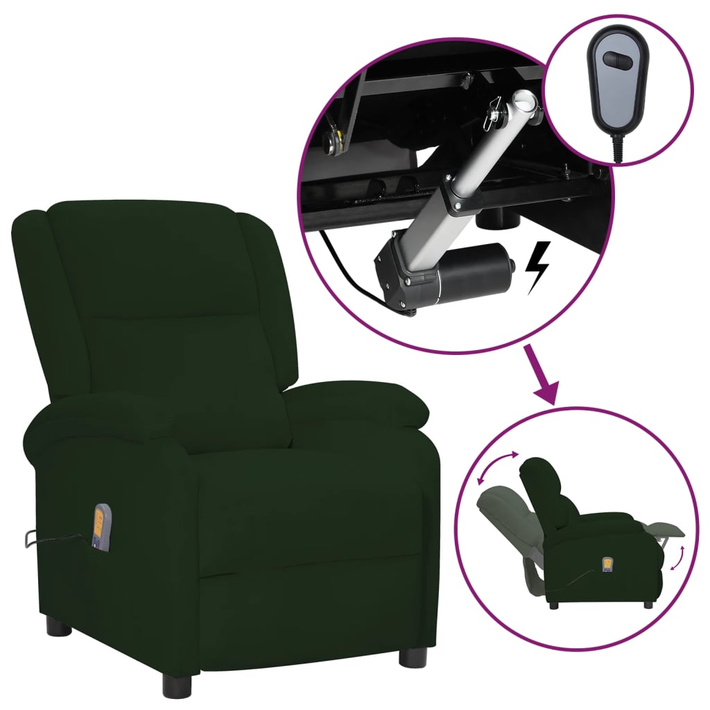 vidaXL Elektrisk massagefåtölj mörkgrön sammet