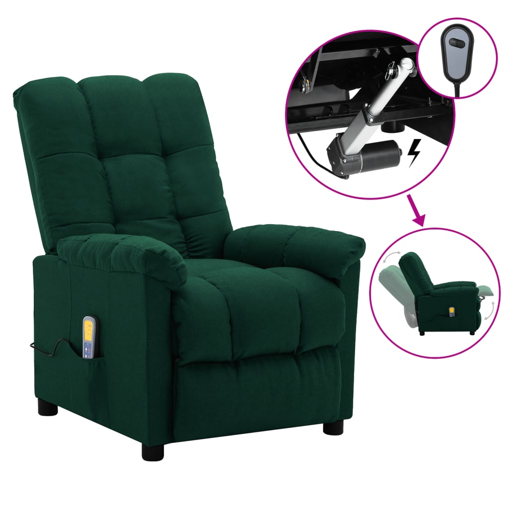 vidaXL Elektrisk massagefåtölj mörkgrön tyg