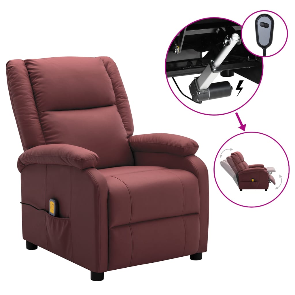 vidaXL Elektrisk massagefåtölj vinröd konstläder