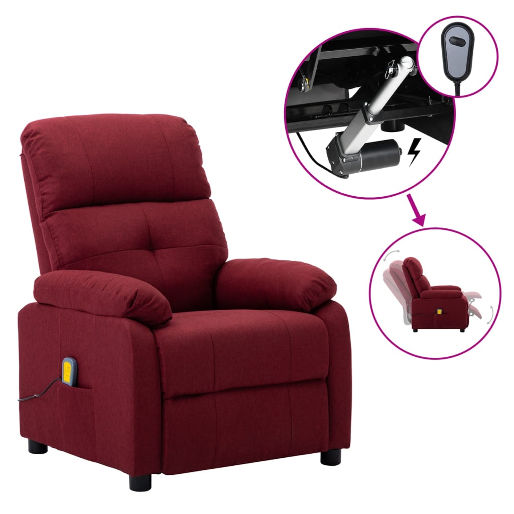 vidaXL Elektrisk massagefåtölj vinröd tyg