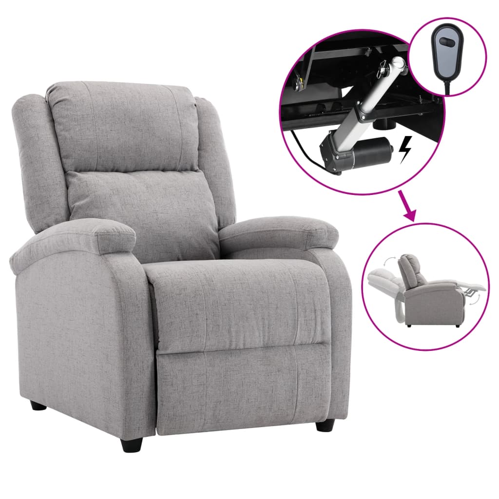vidaXL Elektrisk reclinerfåtölj ljusgrå tyg
