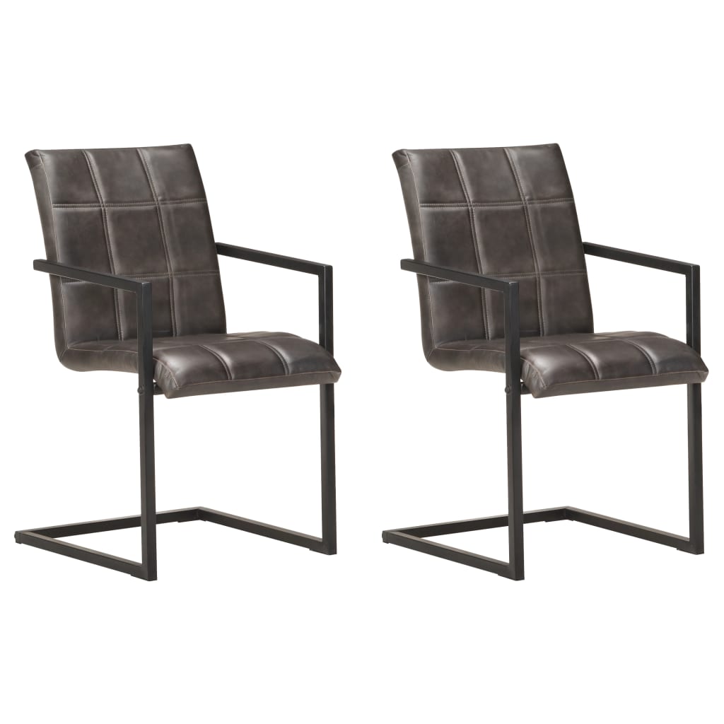 vidaXL Fribärande matstolar 2 st grå äkta läder