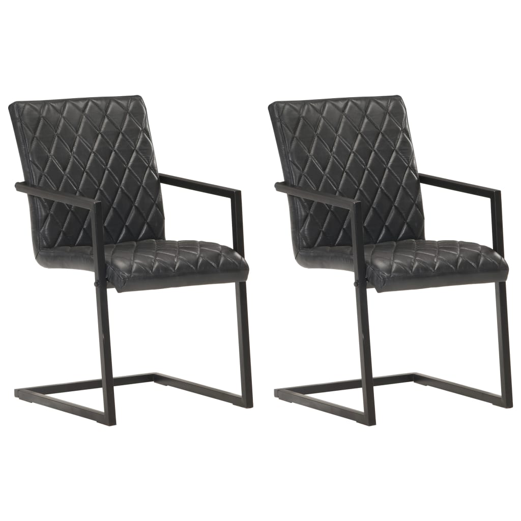 vidaXL Fribärande matstolar 2 st svart äkta läder