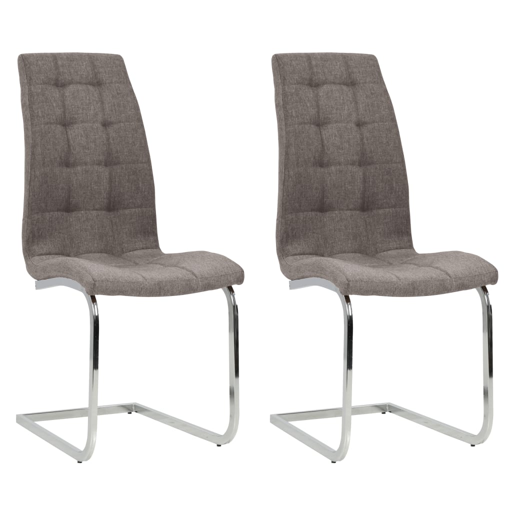 Dessa 2 fribärande matstolar har en chic och elegant design och blir en modern detalj i din inredning. Sitsen och ryggstödet är klädda i ett tåligt tyg och har en mjuk och bekväm skumstoppning. Den hållbara stålramen bidrar till stolarnas stabilitet och hållbarhet. Deras ergonomiska utformning ger dig optimal sittkomfort.