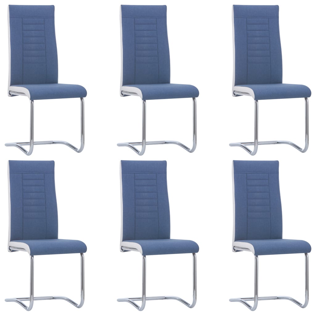 Få ett modernt inslag i ditt kök eller matsal med våra fribärande matstolar i tyg! Matstolarna har en stilig och modern design, som blir perfekt i ditt hem, din restaurang eller ditt kontor. Matstolarna är klädda i hållbart tyg med en tjockt stoppad sits som bidrar till hög sittkomfort. Dess ergonomiska design gör matstolen väldigt bekväm att sitta på. Tack vare den förkromade stålramen är stolarna väldigt stadiga och stabila. I leveransen ingår 6 matstolar.