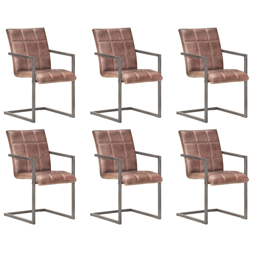 Dessa fribärande matstolar med retro design och blockmönster passar alla kök eller matsalar. Tack vare sitsens och ryggstödets tjocka fyllning är dessa stolar i äkta läder mycket bekväma och även enkla att rengöra. Den robusta ramen i järn gör dem starka och hållbara.