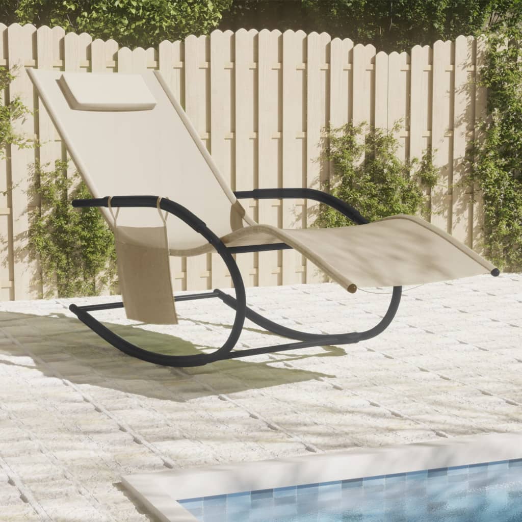 vidaXL Gungande solsäng gräddvit stål och textilene