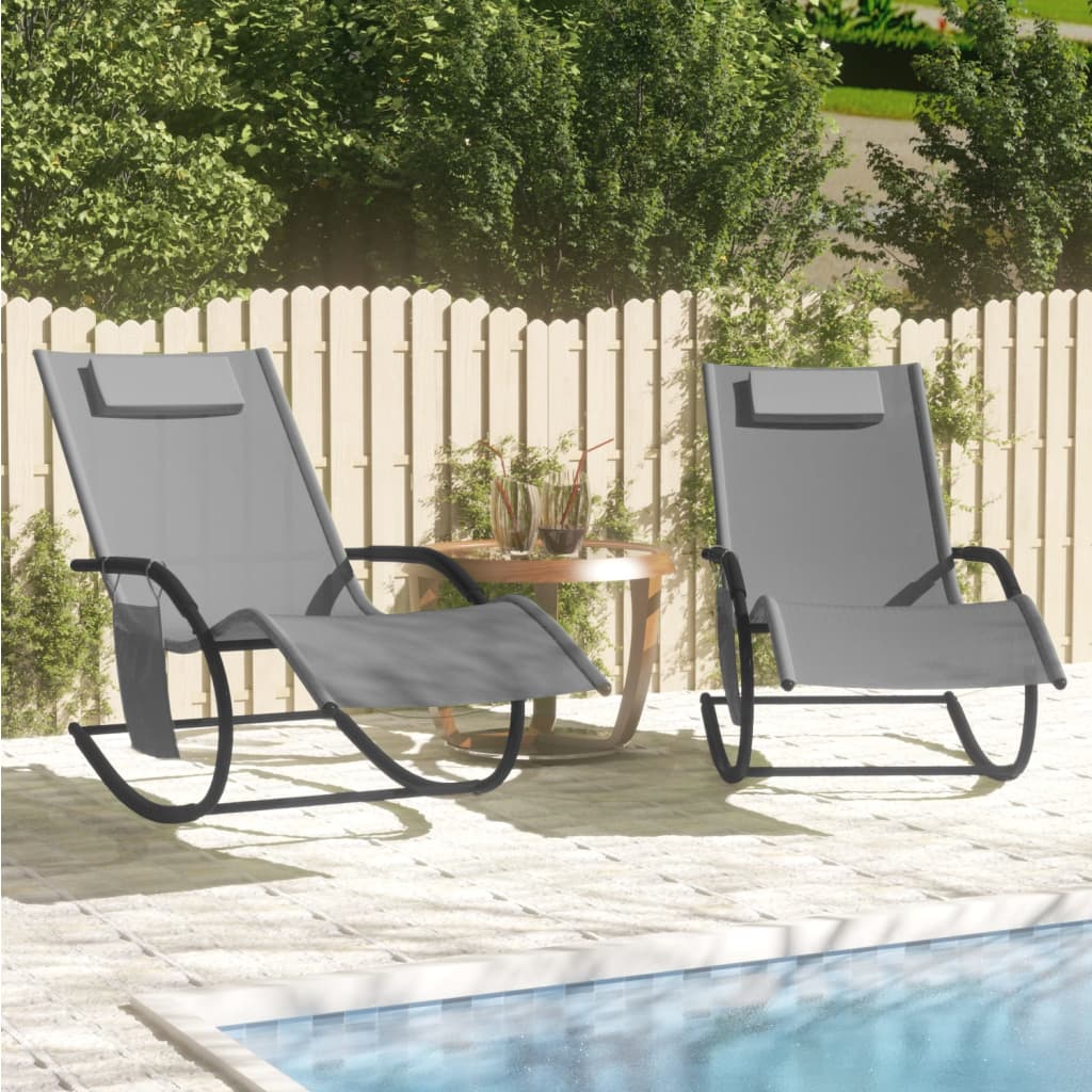 vidaXL Gungande solsängar 2 st grå stål och textilene