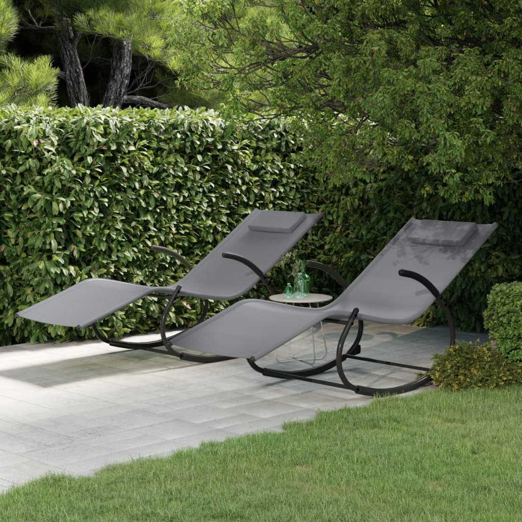 vidaXL Gungande solsängar 2 st grå stål och textilene