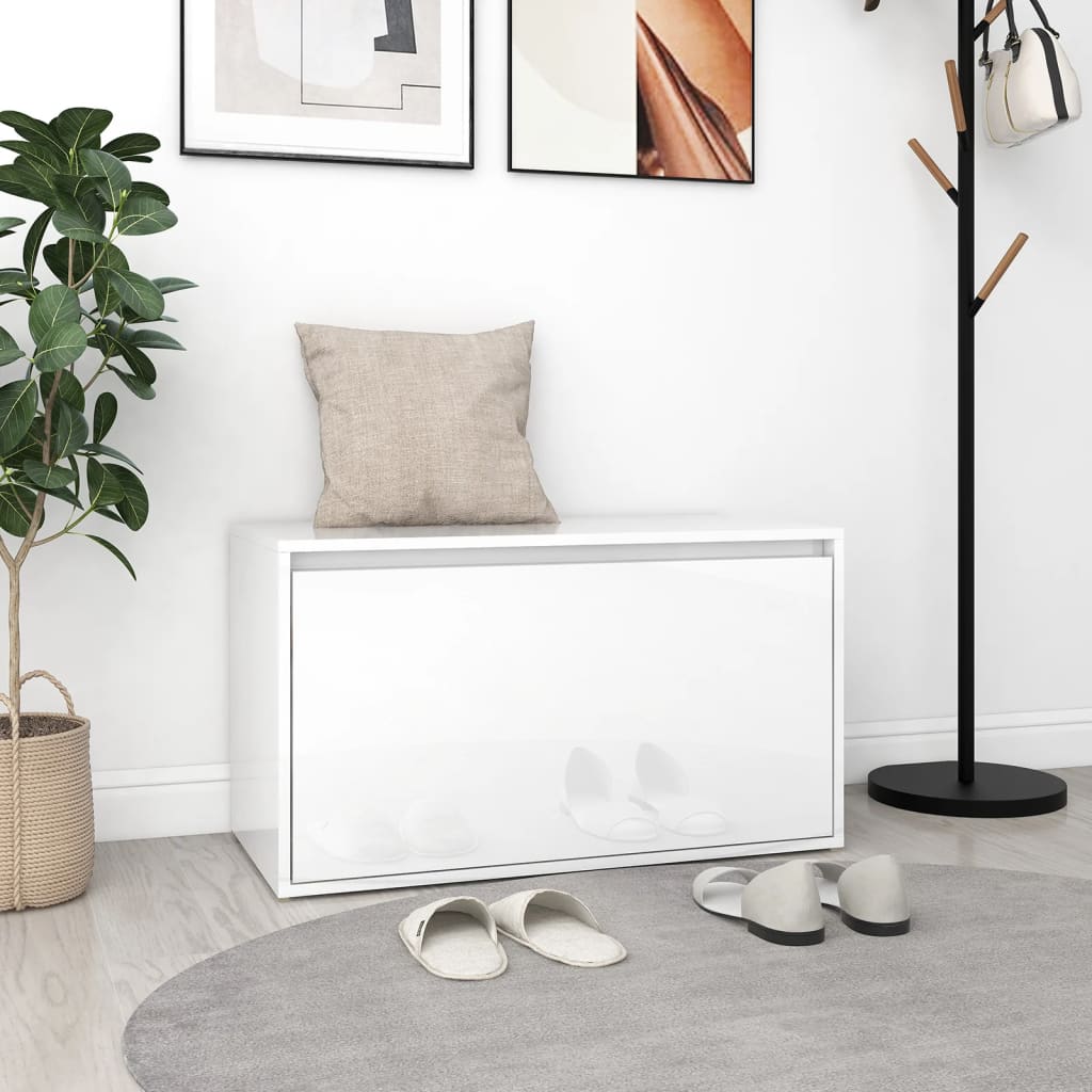 vidaXL Hallbänk vit högglans 80x40x45 cm spånskiva