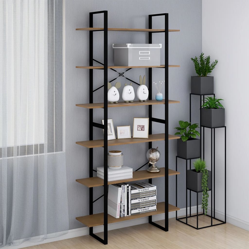 Det här höga skåpet i trä kan integreras perfekt med din nuvarande heminredning och ger en känsla av industriell look. Bokhyllan är tillverkad av massivt furuträ, vilket garanterar robusthet, hållbarhet och långvarig service. Den har 6 hyllor som erbjuder gott om förvaringsutrymme för att förvara och visa dina föremål eller dekorationer. Förvaringshyllan är lätt att rengöra med en fuktig trasa. Dessutom kan den också användas som 2 mindre skåp. OBS: Skruv(ar) och plugg(ar) för insidan av väggen ingår ej. Sök och använd skruv(ar) och plugg(ar) som passar dina väggar. Om du är osäker, sök professionell rådgivning. Läs och följ varje steg i instruktionerna noggrant.