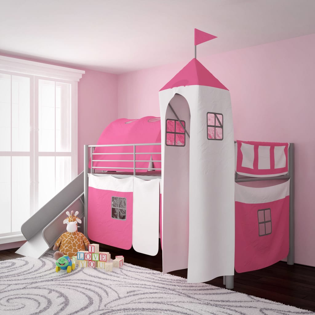 vidaXL Loftsäng med Rutchkana, Stege och Slott, Rosa 200×100 cm