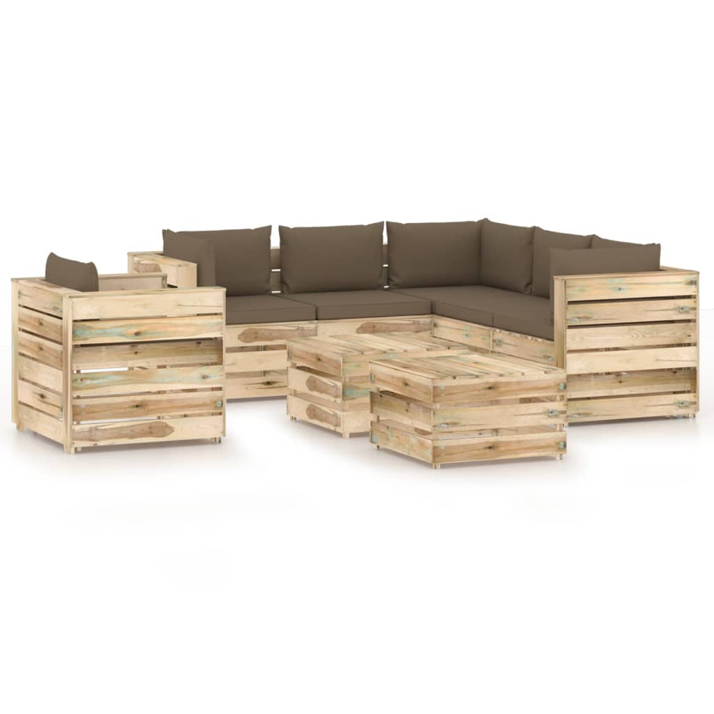vidaXL Loungegrupp med dynor 8 delar tryckimpregnerat trä