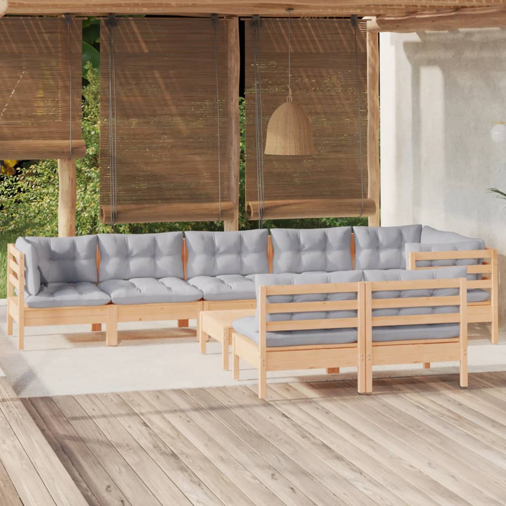vidaXL Loungegrupp med dynor 9 delar grå furu