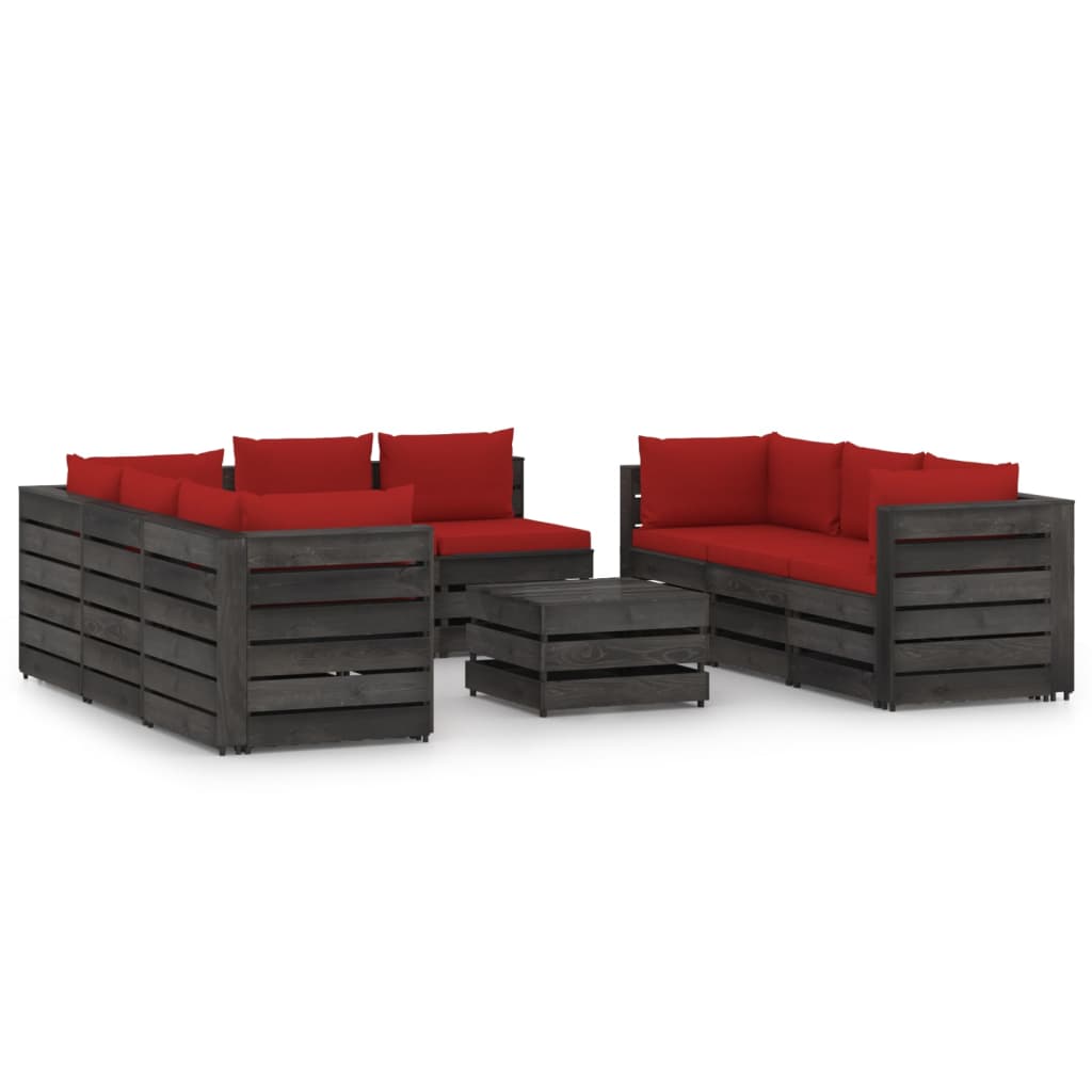 vidaXL Loungegrupp med dynor 9 delar grå impregnerat trä