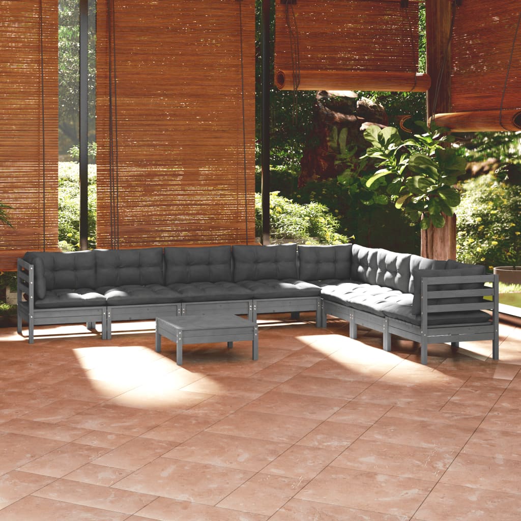 vidaXL Loungegrupp med dynor 9 delar grå massiv furu