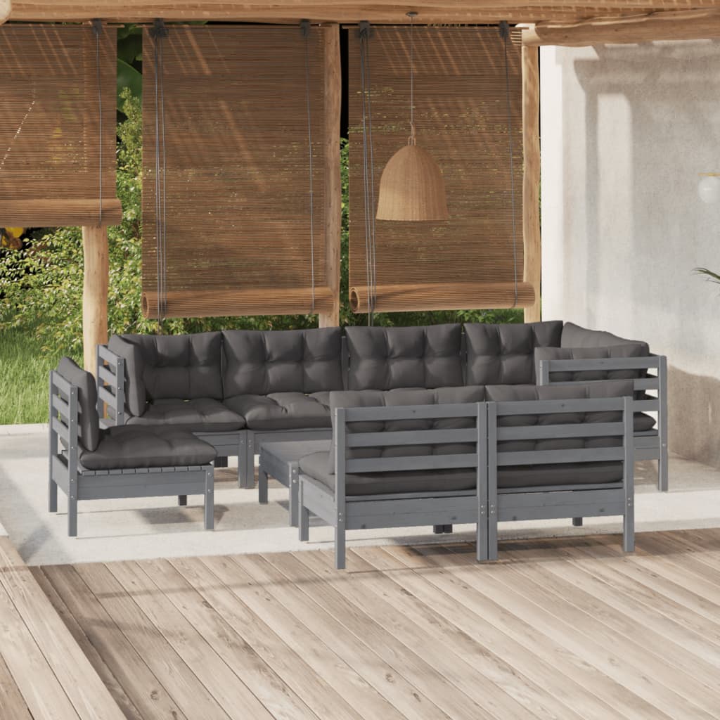 vidaXL Loungegrupp med dynor 9 delar grå massiv furu