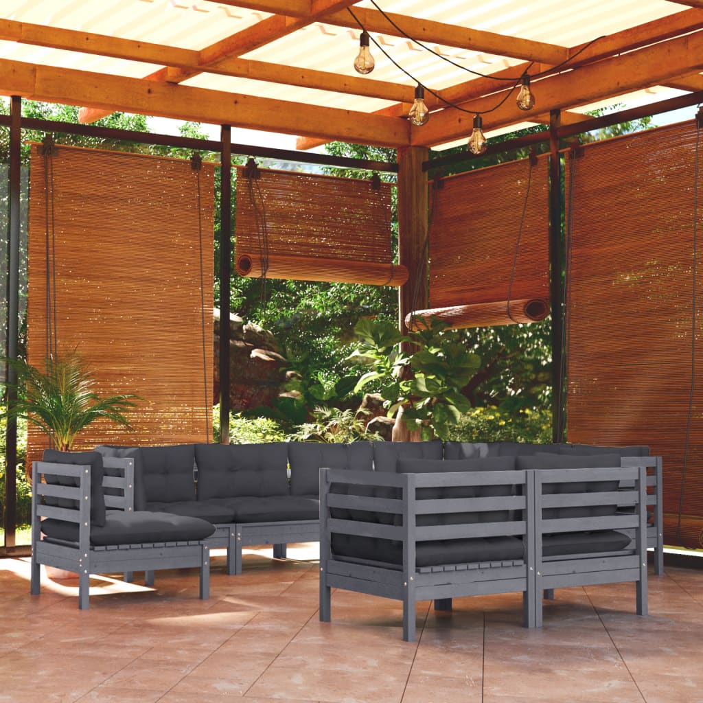 vidaXL Loungegrupp med dynor 9 delar grå massiv furu