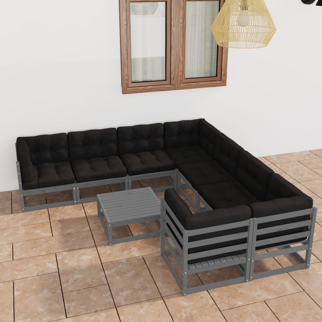 vidaXL Loungegrupp med Dynor 9 delar grå massiv furu