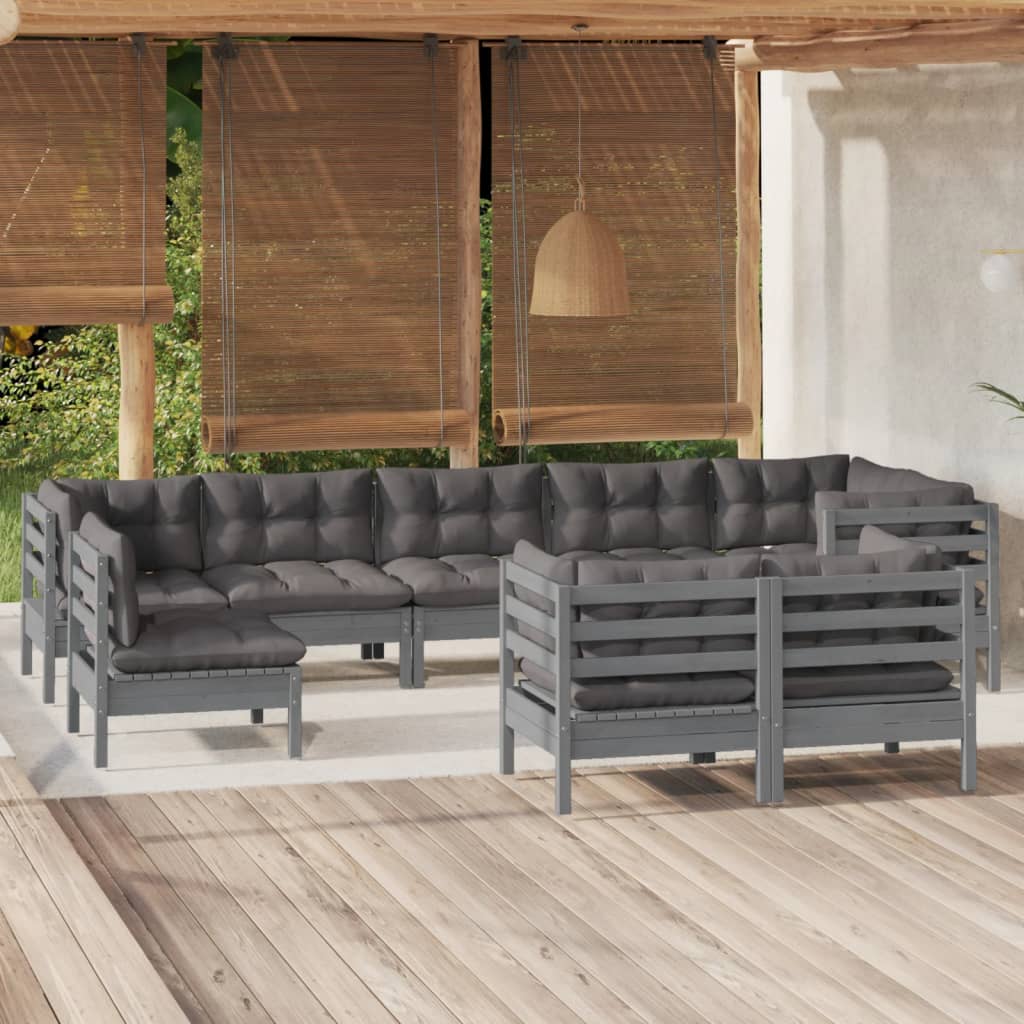 vidaXL Loungegrupp med dynor 9 delar grå massiv furu