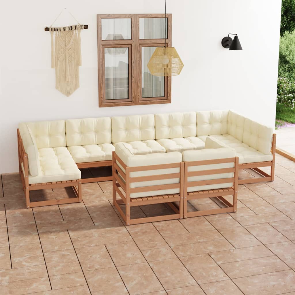 vidaXL Loungegrupp med dynor 9 delar honungsbrun massiv furu