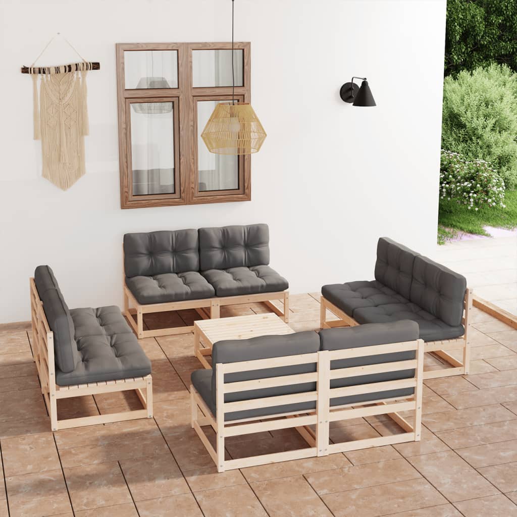 vidaXL Loungegrupp med dynor 9 delar massiv furu