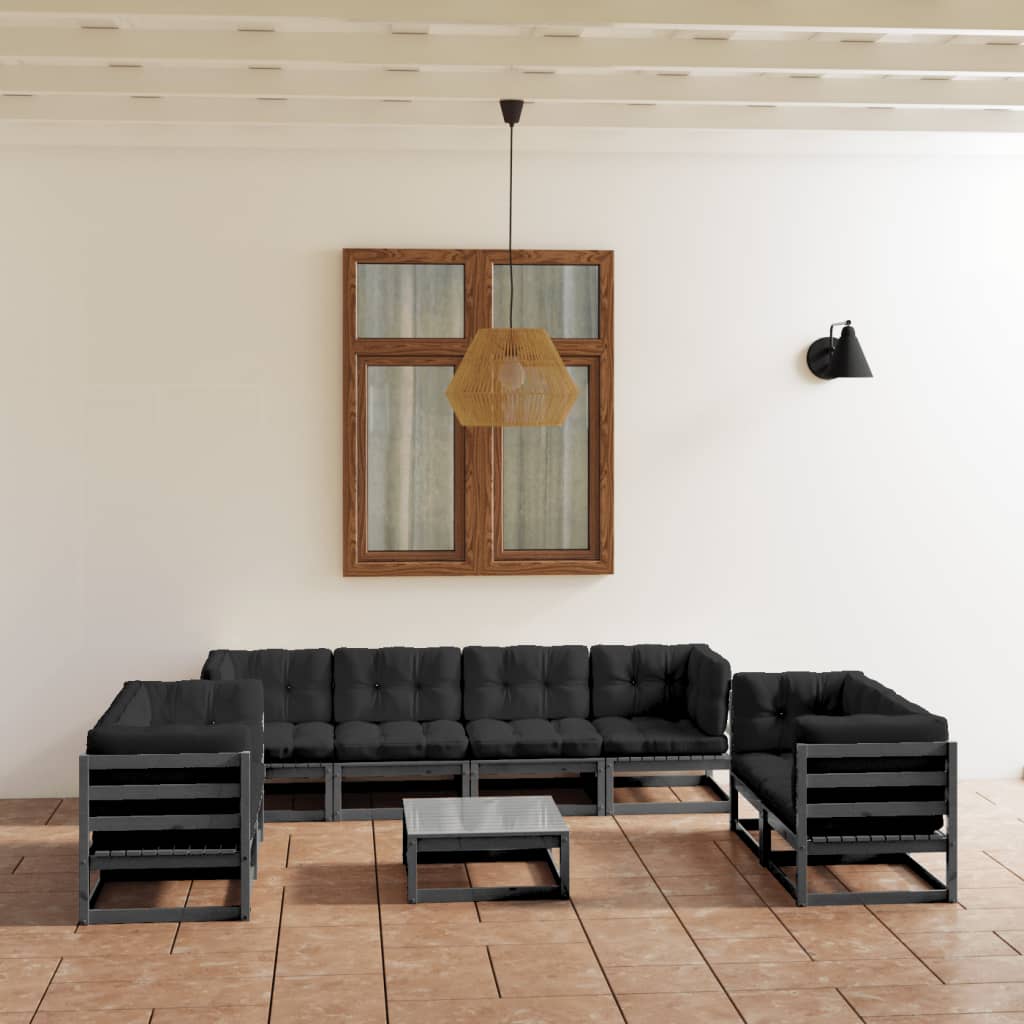 vidaXL Loungegrupp med dynor 9 delar massiv furu