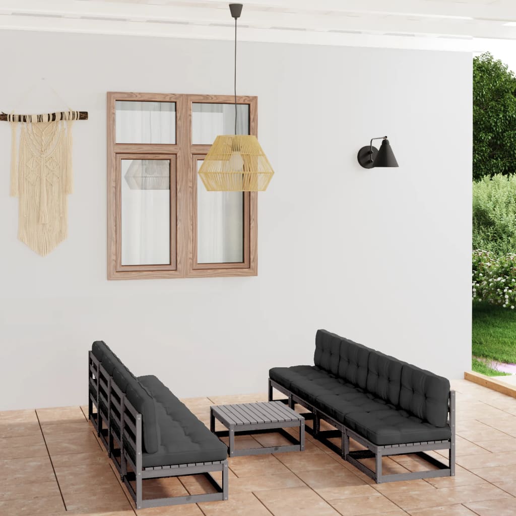 vidaXL Loungegrupp med dynor 9 delar massiv furu