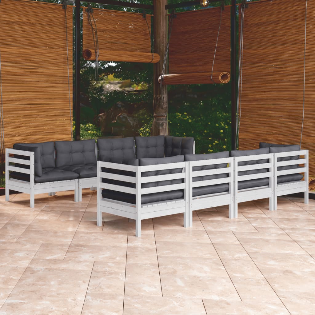 vidaXL Loungegrupp med dynor 9 delar massiv furu
