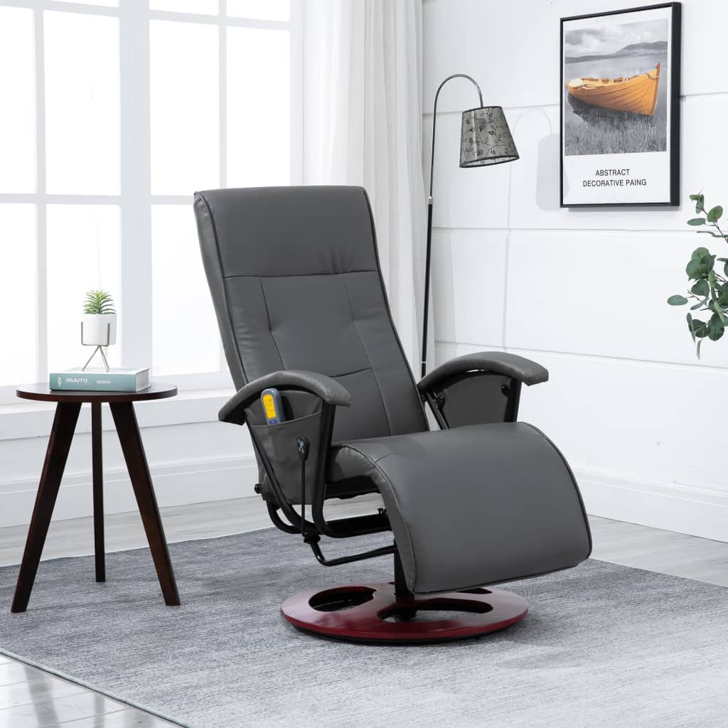 Ge dig själv en härlig sittplats med vår bekväma massagestol! Den här massagestolen har en fjärrkontroll och 5 massagefunktioner för huvudet, nacken, ryggen och benen så att du kan koppla av fullständigt hemma eller på kontoret. Sitsen kan värmas upp med ett enkelt knapptryck för ännu mer komfort och avkoppling. Stolen är tillverkad i konstläder och är mycket slitstark, dess stora träbas gör den dessutom väldigt stabil. Massagestolens sits kan rotera fritt så att du aldrig behöver flytta stolen. Stolen har även en inbyggd timer för att styra massagelängden. Den här elektriska massagefåtölj har en klassisk design och ger dig en avkopplande massage med vibrationer. Intensiteten kan justeras i tre nivåer. Det justerbara ryggstödet möter dina specifika sitt- eller liggbehov. Tack vare den elektriska massagestolens värmealstrande massagepunkter får du garanterat en härlig upplevelse. Om du vill ha en bekväm massage i hemmet kommer denna elektriska massagefåtölj bli ditt förstahandsval!