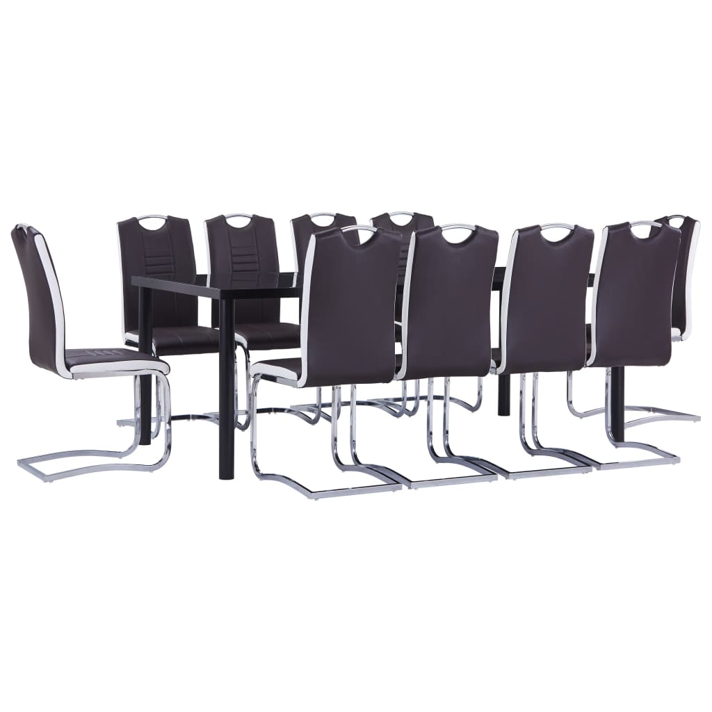 Vår matgrupp har en elegant och modern design och passar perfekt i moderna hem, matrum eller kommersiella restauranger. Dess stilrena och moderna design kommer att komplettera din inredning. Bordet har en slät bordsskiva i härdat glas som är enkel att rengöra med en fuktig trasa. Den pulverlackerade metallramen bidrar till dess massiva konstruktion och gör den mycket stabil och hållbar. Stolarna är klädda i mjukt konstläder och är tjockt stoppade för maximal komfort. Dess ergonomiska design gör matstolen mycket bekväm att sitta på. Tack vare den kromade stålramen är stolarna robusta och stabila. Dessutom har stolarna ett handtag i ryggstödet så att de enkelt kan flyttas. Matgruppen är enkel att montera. Vår matgrupp är perfekt när du bjuder in familj och vänner på middagsbjudningar.