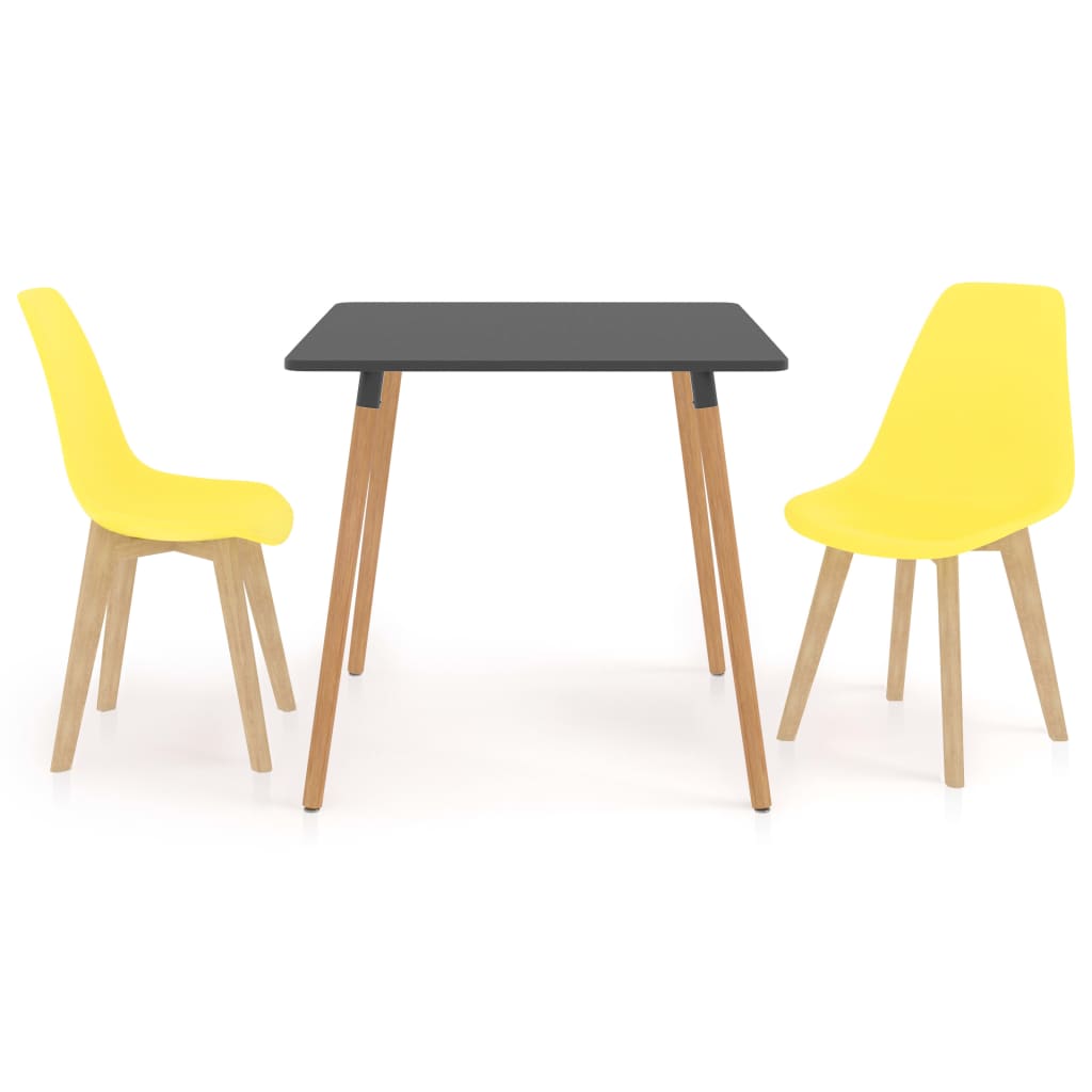 Matgruppen har en elegant och modern design och passar bra till moderna hem, matsalar eller kommersiella restauranger. Bordsskivan är gjord av högkvalitativ MDF med PVC och sitsen är gjord av PP, vilket gör dem enkla att rengöra samt hållbara. Dess mjuka linjer tillför elegans. Benen i massivt bokträ gör matbordet och stolarna stabila och robusta. Stolarna har även högt ryggstöd med svängd form för maximal sittkomfort. Matgruppen är även perfekt när du har familj och gäster över på middag.