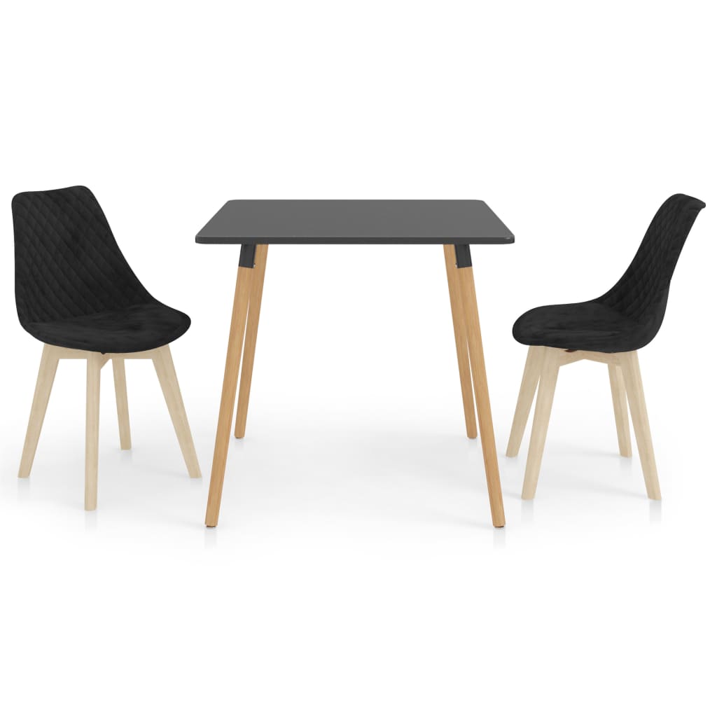 Matgruppen har en elegant och modern design och passar bra till moderna hem, matsalar eller kommersiella restauranger. Bordsskivan är gjord av högkvalitativ MDF med PVC och sitsen är gjord av sammet, vilket gör dem enkla att rengöra samt hållbara. Dess mjuka linjer tillför elegans. Benen i massivt bokträ gör matbordet och stolarna stabila och robusta. Stolarna har även högt ryggstöd med svängd form för maximal sittkomfort. Matgruppen är även perfekt när du har familj och gäster över på middag.