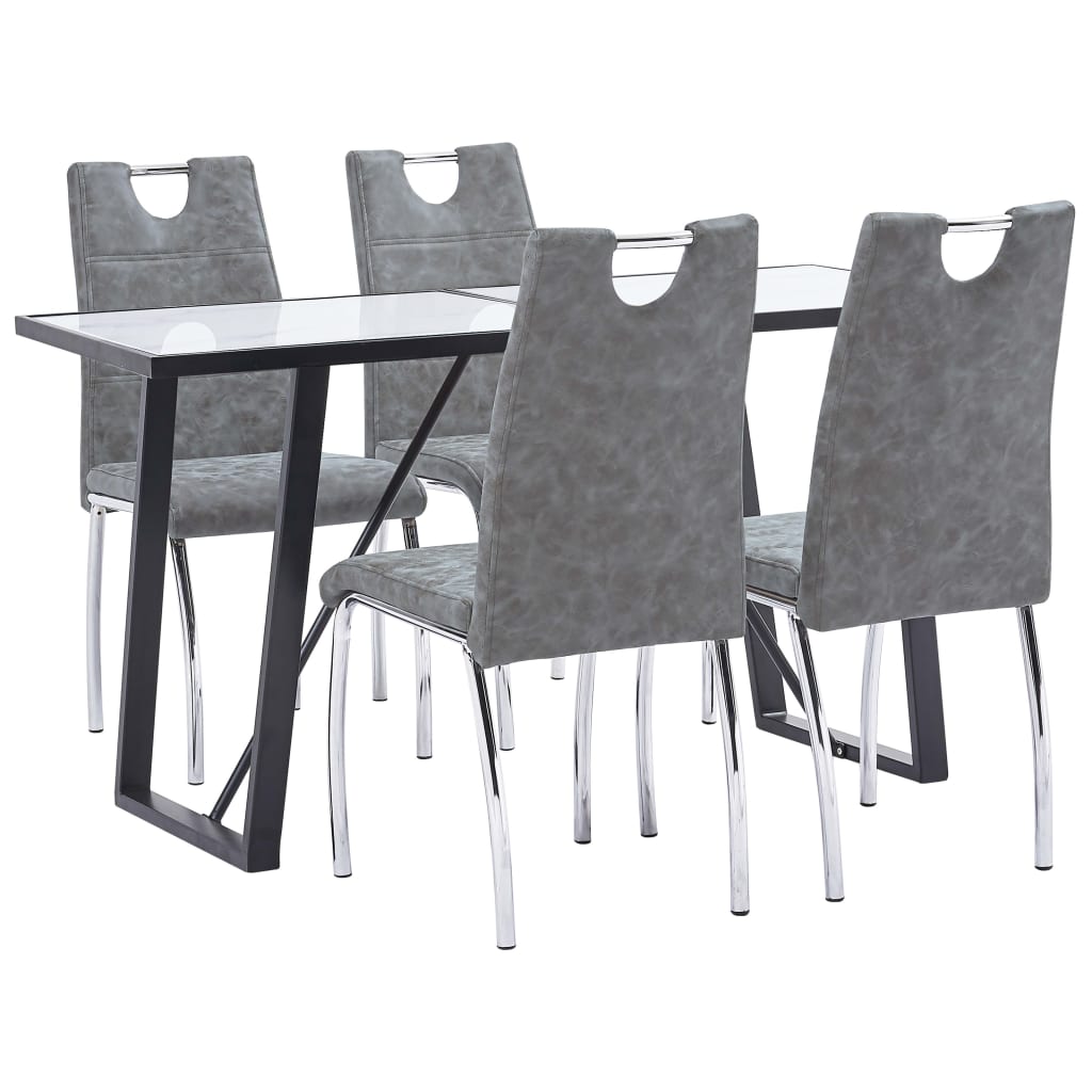 vidaXL Matgrupp 5 delar grå konstläder
