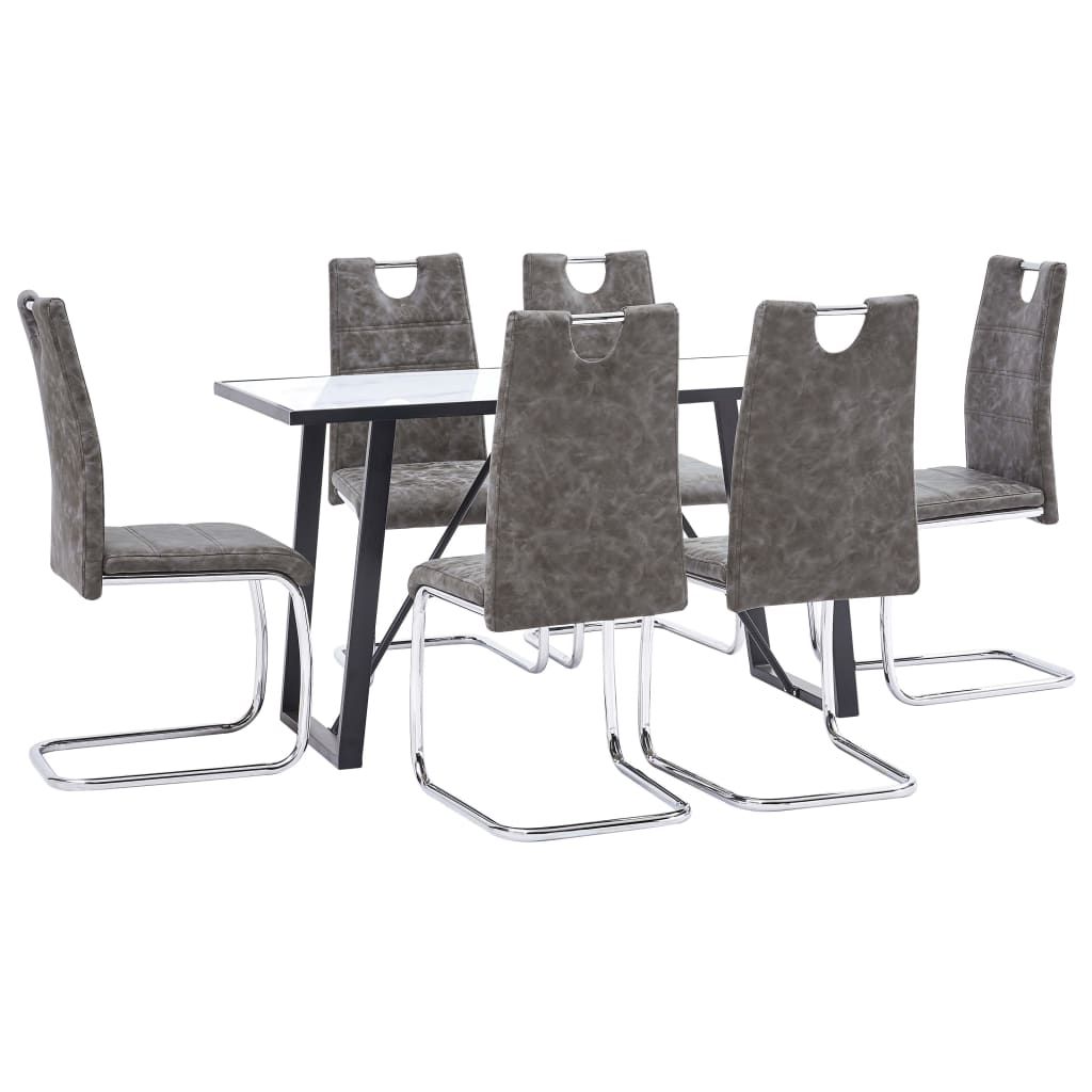 Vår matgrupp har en modern design och passar perfekt i moderna hem, matrum eller kommersiella restauranger. Dess stilrena och moderna design kommer att komplettera din inredning. Bordsskivan är tillverkad av härdat glas som är enkelt att rengöra; Dess marmormönster tillför en unik elegans när du äter. Den pulverlackerade stålramen bidrar till barbordets stabilitet och stadighet. Stolarna har en ergonomiskt utformad sits och ett inbyggt ryggstöd med en modern, svängd design. Dessutom är de enkla att montera. Vår matgrupp är perfekt när du bjuder in familj och vänner på middagsbjudningar. Vid leverans ingår ett bord och 6 stolar.