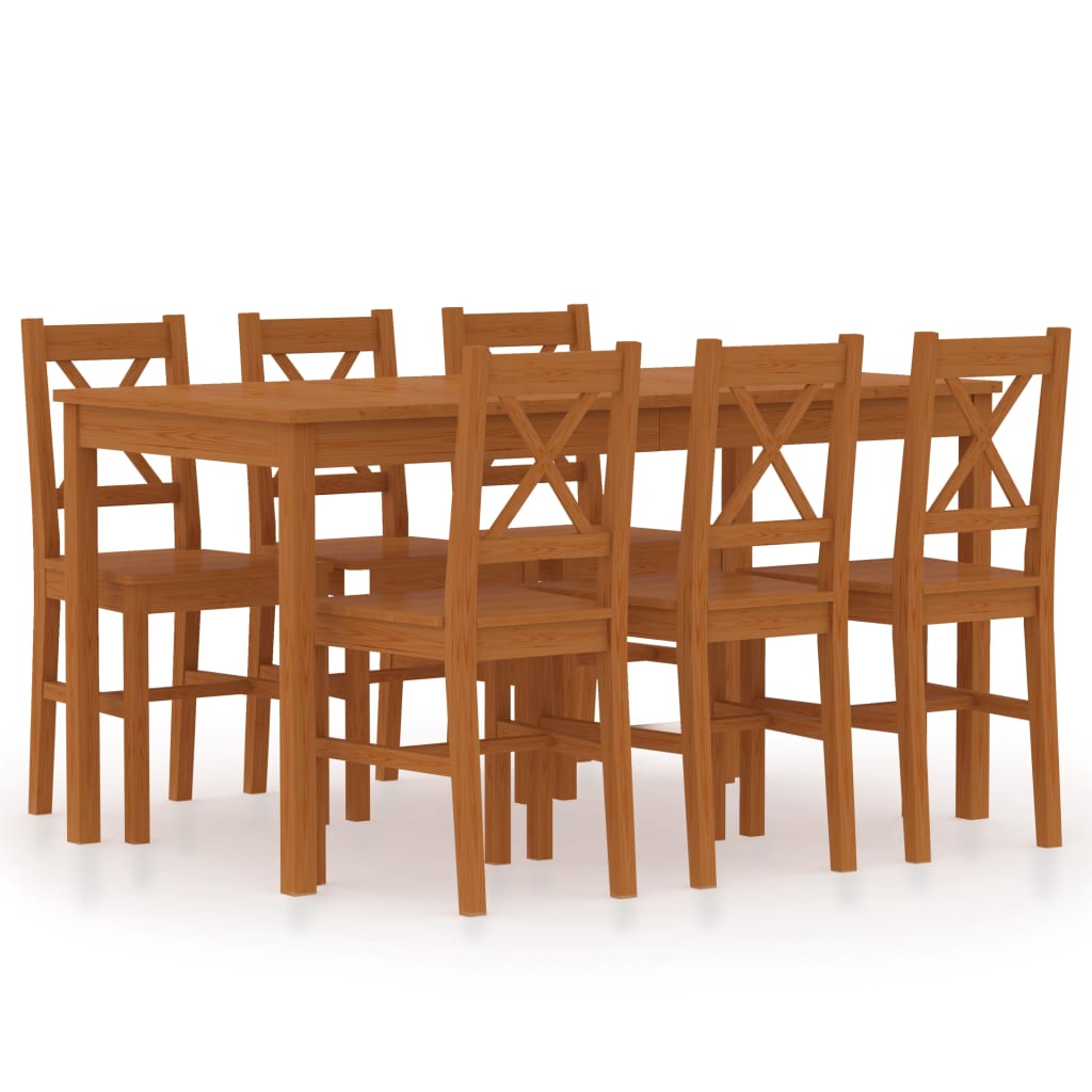 vidaXL Matgrupp 7 delar furu honungsbrun