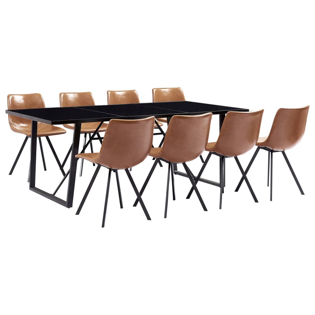 vidaXL Matgrupp 9 delar konjaksbrun konstläder