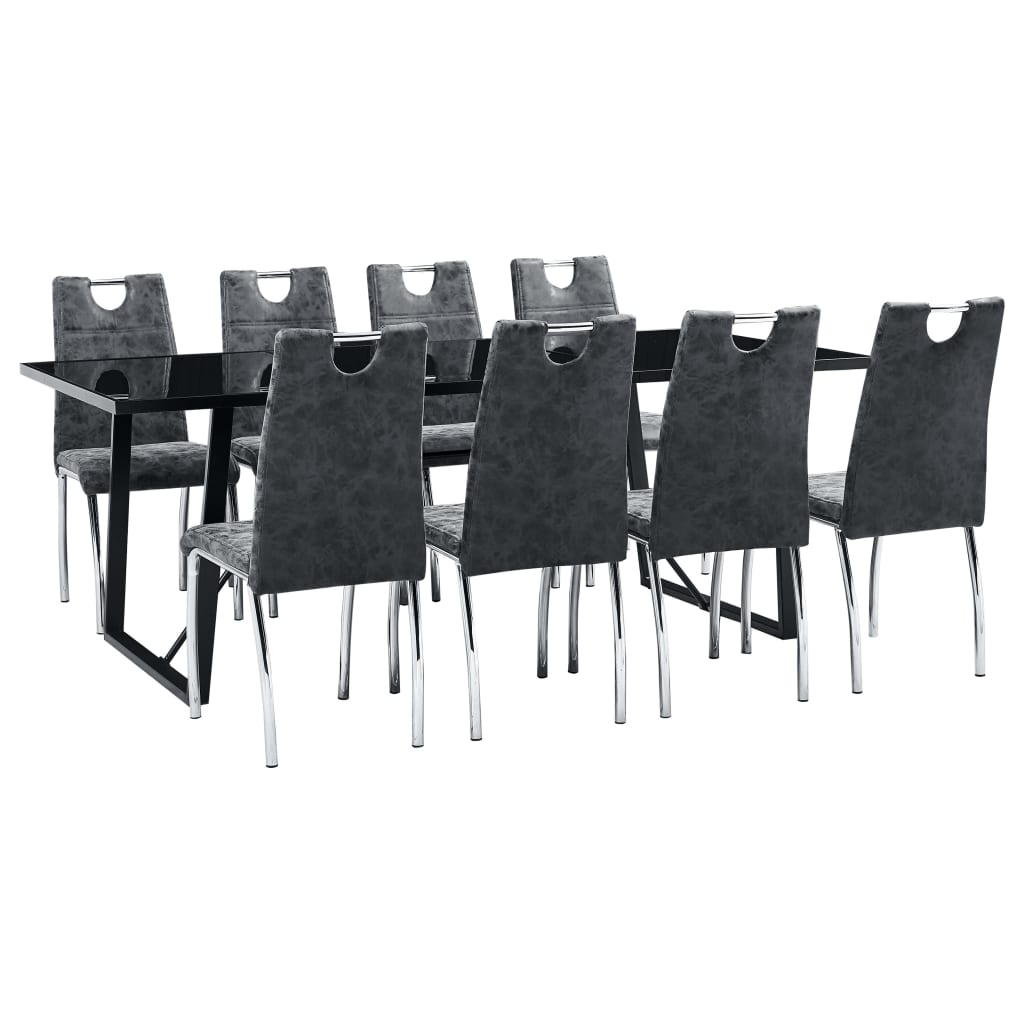 Vår matgrupp består av 8 matstolar och ett stort matbord och blir perfekt i ditt matrum eller kök. Matstolarna är klädda i konstläder för komfort. Tack vare den mjuka sitsen och ryggstödet ger vår uppsättning stolar optimal sittkomfort. Dessutom är matgruppen utrustad med metallben som gör den högst stabil och hållbar. Bordsskivan i härdat glas är väldigt enkel att rengöra med en fuktig trasa. Matgruppen är enkel att montera. I leveransen ingår 1 matbord och 8 matstolar.